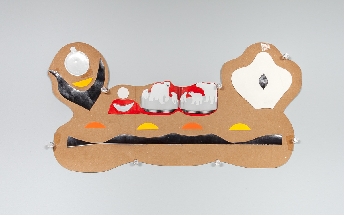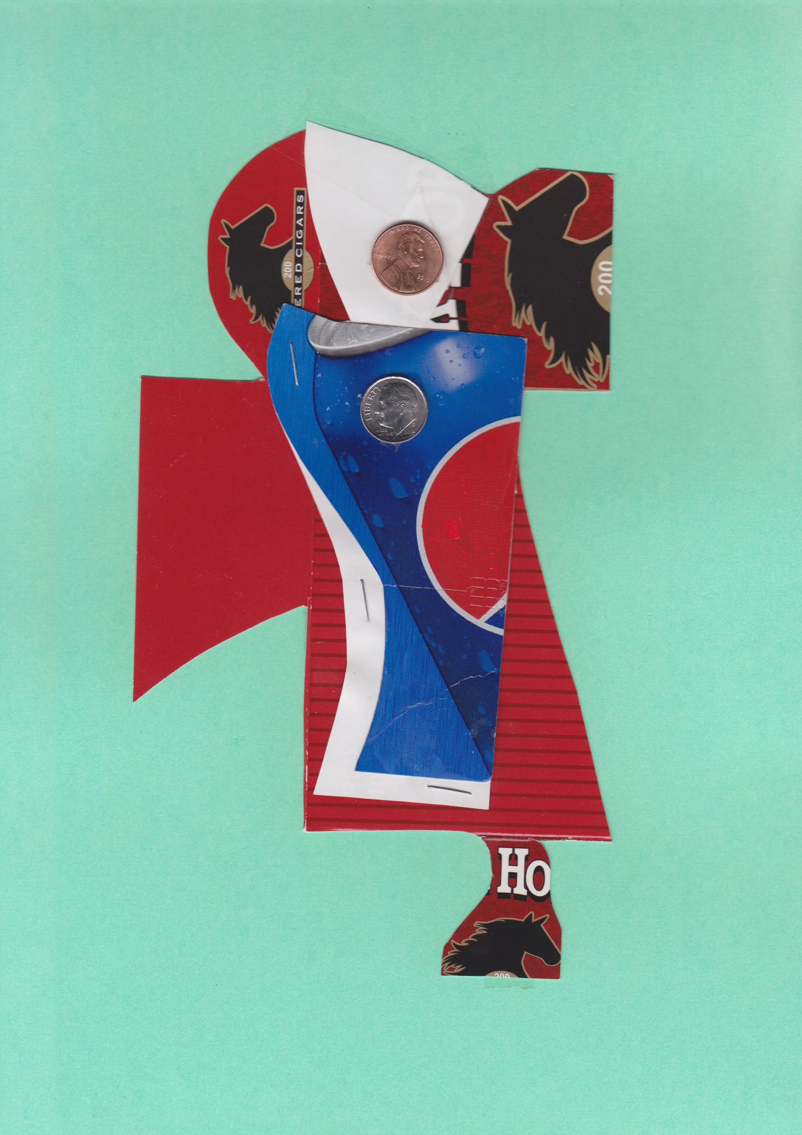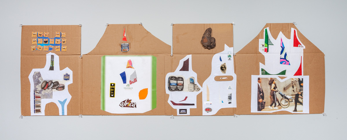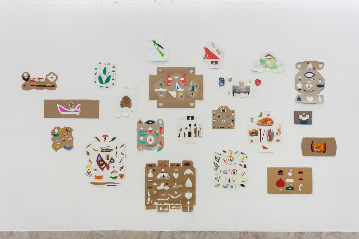 The thousands of works Kong has made while working at the store betray an obvious resourcefulness and thrift, but many possess a surprising critical gravity. In the most striking, the ideologies of consumption—the very source of his business’ revenue—are systematically dismantled. Cut up and de-contextualized yet unavoidably familiar, the permanently branded shapes in these collages and assemblages have a resounding message: desire itself is now completely abstract.