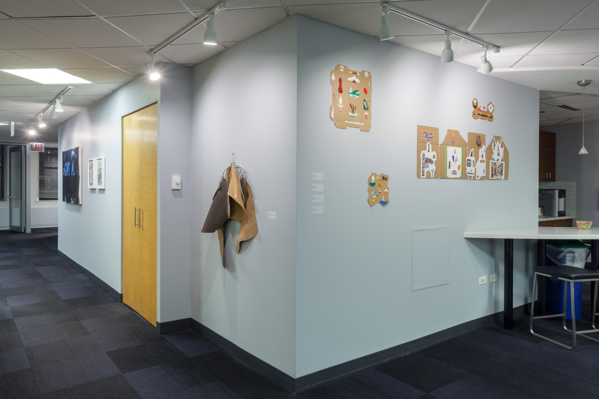 Artists Run Chicago 2.0, an exhibition at Hyde Park Art Center celebrating fifty artist-run spaces and organizations that fuel Chicago’s independent art scene. Bridgeport-based 062 Gallery presented work by Thomas Kong and Ed Oh, including an installation of Thomas Kong work and objects from Kim’s Corner Food in the Martha Oakman Clinton Artist Lounge.