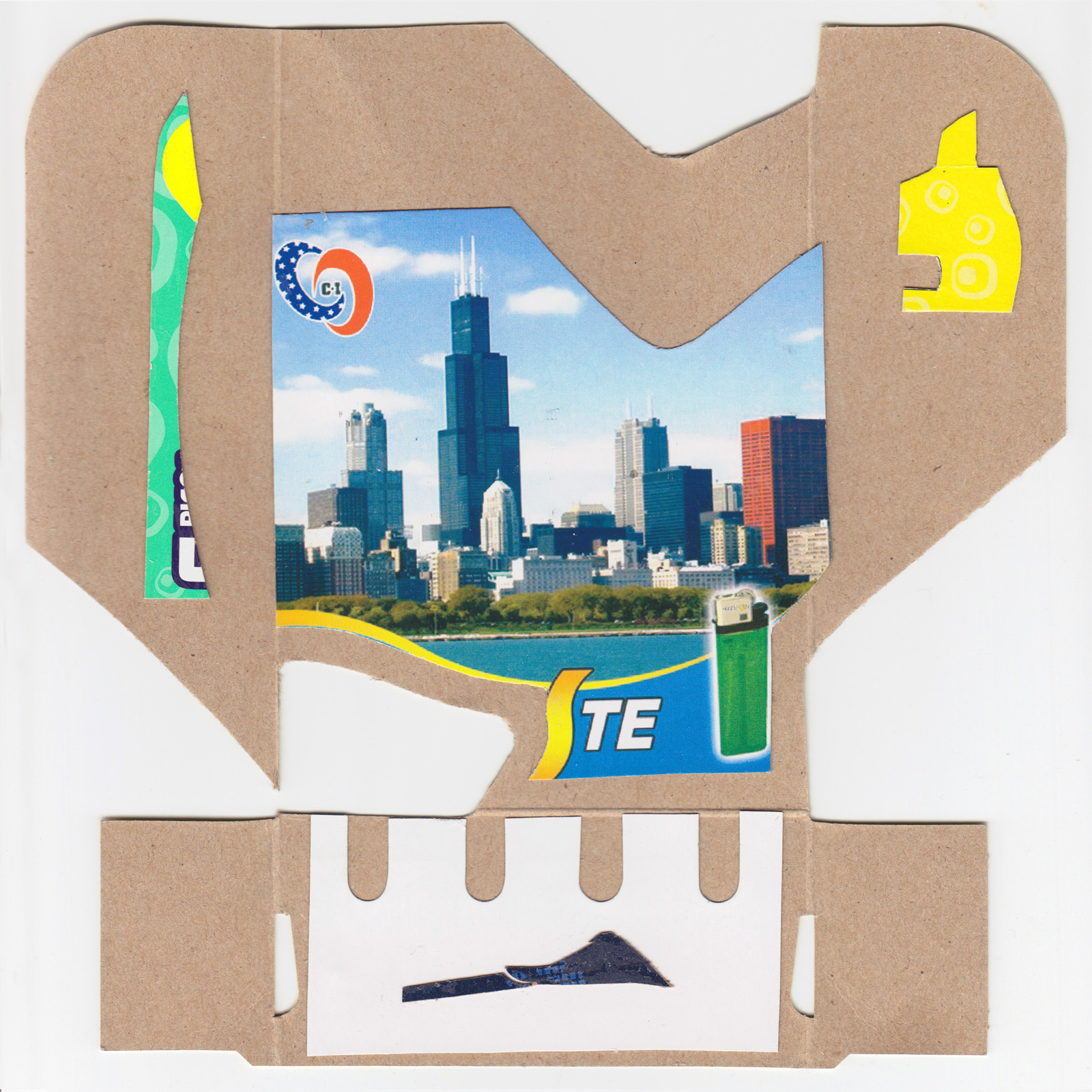 In the summer of 2015, Thomas Kong worked with Kristin Abhalter, Dan Miller, and Nathan Smith on a proposal for public mural near his convenience store, Kim's Corner Food at 1371 West Estes Avenue. In less than two weeks, Kong created 206 collage works for the project; 16 of the works were subsequently incorporated in the mural design, and exhibited at Roman Susan in April 2016.