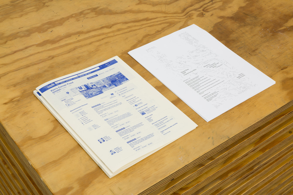 A publication which functioned as a 'reader' for Thomas Kong's work published by Dan Miller (risograph on paper, 12 pages, 8.5 x 11 inches, edition of 60) was available at the exhibition, and was accompanied by a specially-designed room sheet/checklist.